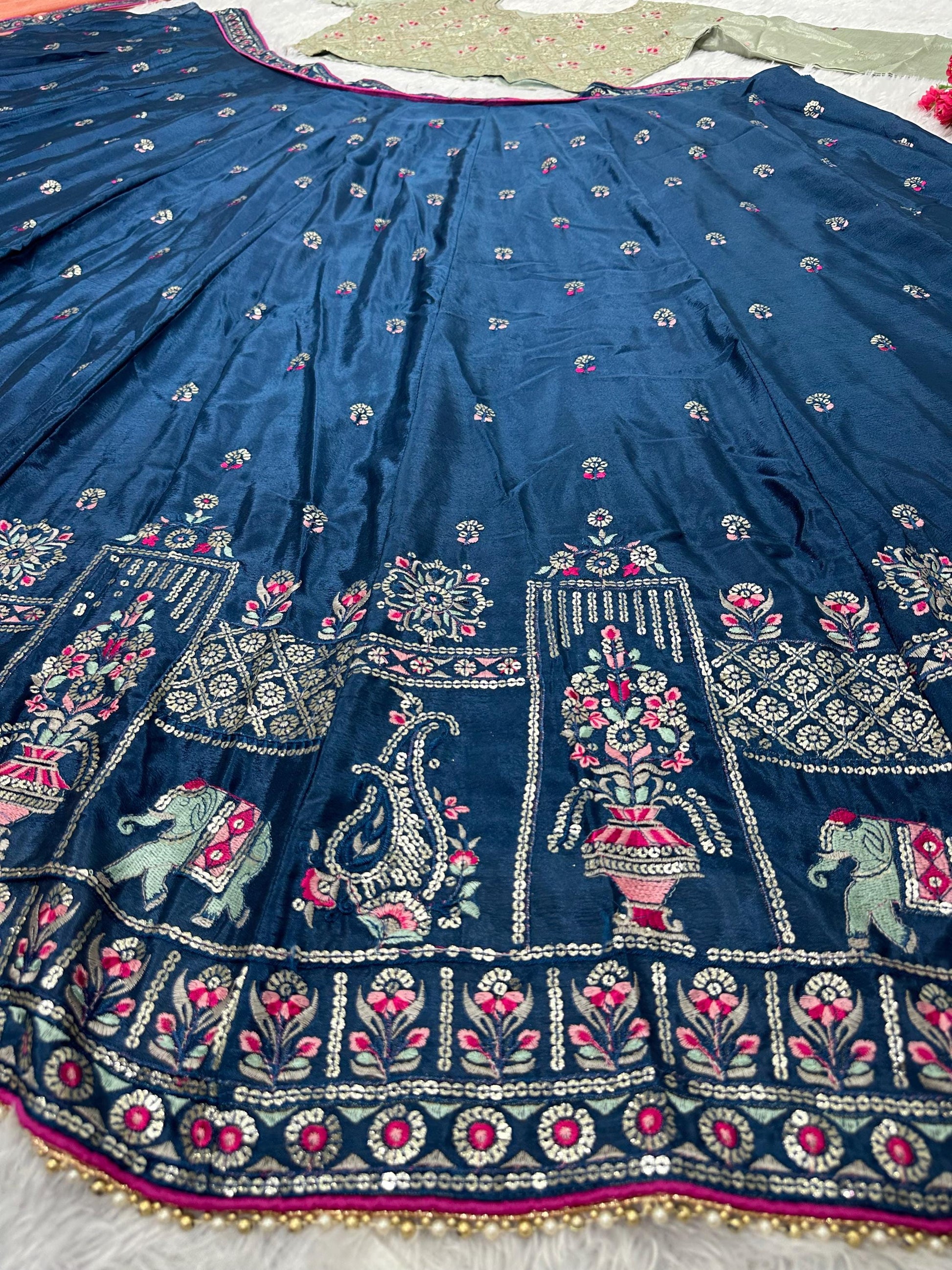 ✨ Bridal Chinon Lehenga Choli Set – Heavy Embroidery & Sequins Work ✨