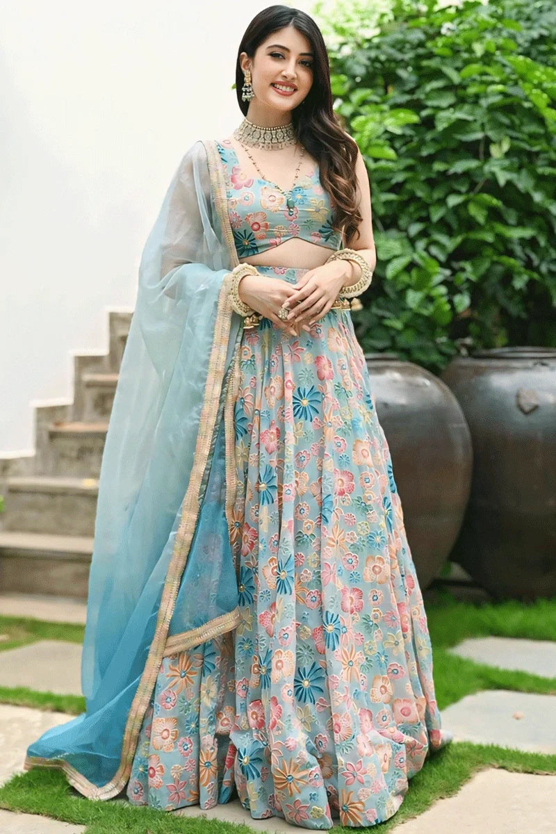 New Traditional Flower Design Sky Blue Colour Lehenga Choli For Wedding From Anaya Designer Studio