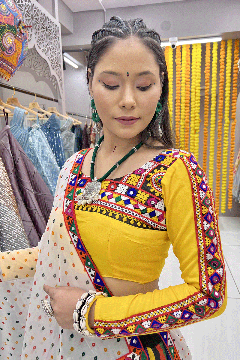 • Work: Heavy Digital Print with Gamthi Work Lace and Real Mirror