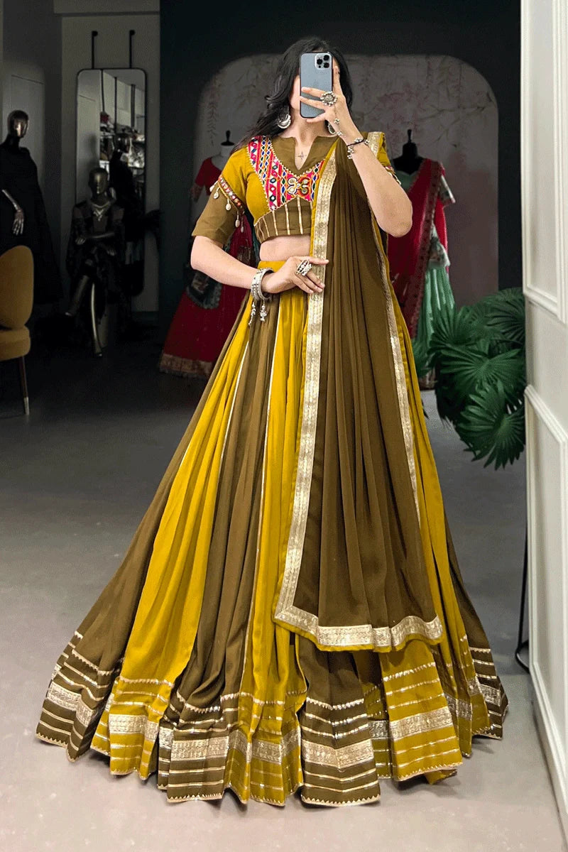 New Traditional Navratri Special Mustard Color Chaniya Choli For Garba From Anaya Designer Studio