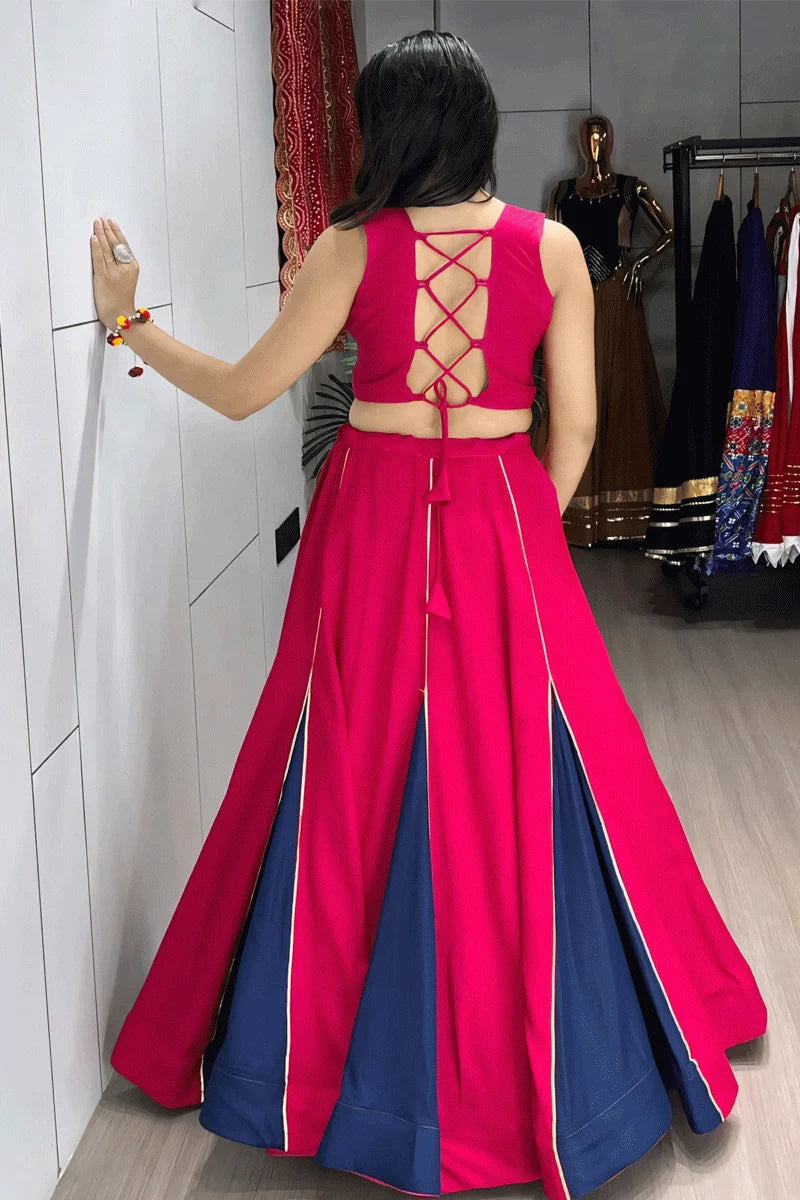 Navratri Special Pink & Navy Blue Chaniya Choli with Gamthi Belt From Anaya Designer Studio