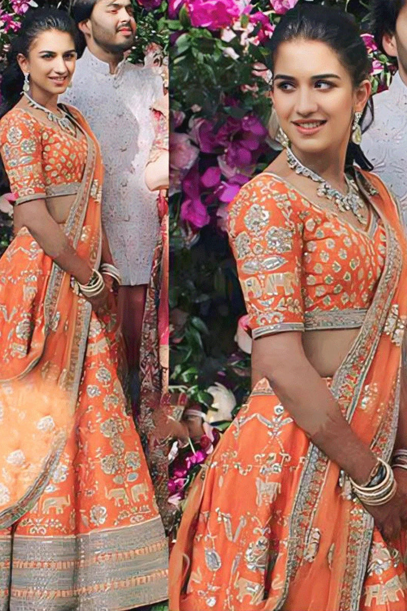 New Arrival Radhika Merchant Lehenga In Orange Colour For Wedding