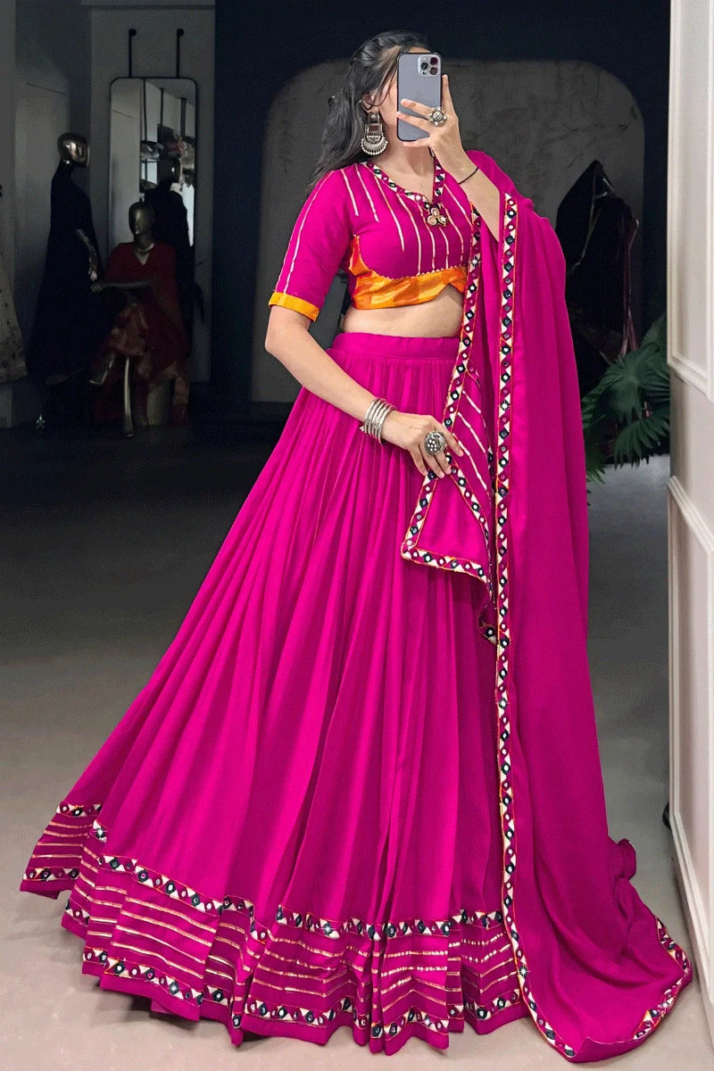 Pink Color Heavy Flair Chaniya Choli For Garba Night