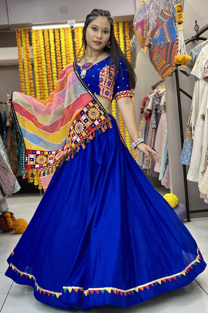 Traditional New Rayon Fabric Blue Lehenga Choli In Multi Colour Samosa Lace For Women